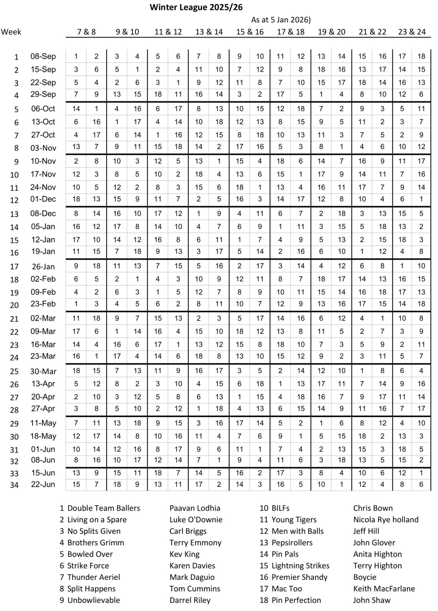 Summer League 2024. The league was won by Bowled Over (Doug & Paula Main). Results »